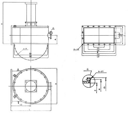 長(zhǎng)方口氣動(dòng)高真空擋板閥外形尺寸與安裝尺寸
