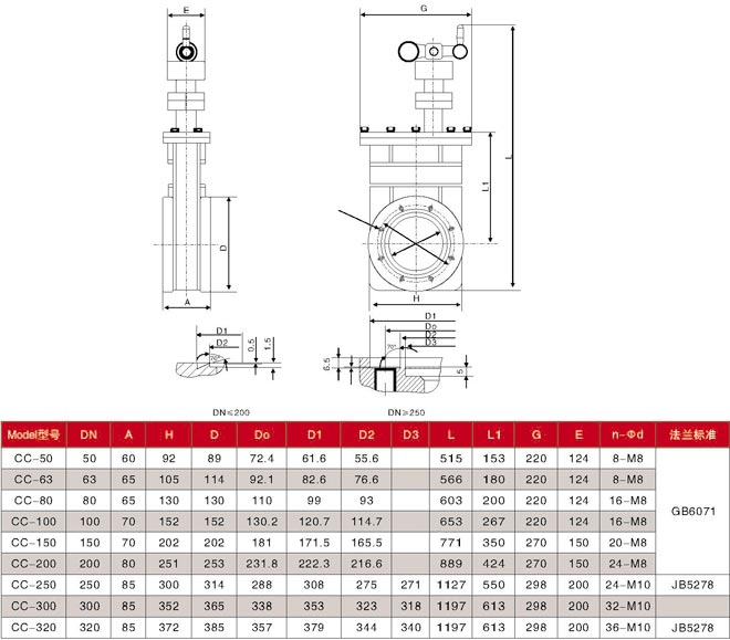 Model 型號(hào) | DN | A | H | D | Do | D1 | D2 | D3 | L | L1 | G | E | n-d | 法蘭標(biāo)準(zhǔn) |